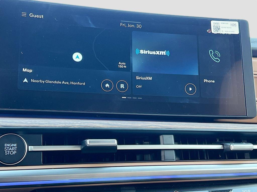 - Radio: AM/FM/HD Bose Premium Audio System -inc: 12 speakers including subwoofer, external amplifier, 12.3" wide touchscreen, Apple CarPlay and Android Auto, Bluetooth® hands-free w/wireless audio streaming, dynamic voice recognition, USB connectivity, SiriusXM, Blue Link+ connected car system, navigation system including traffic flow w/incident data via HD Radio (HERE) and rear seat quiet mode