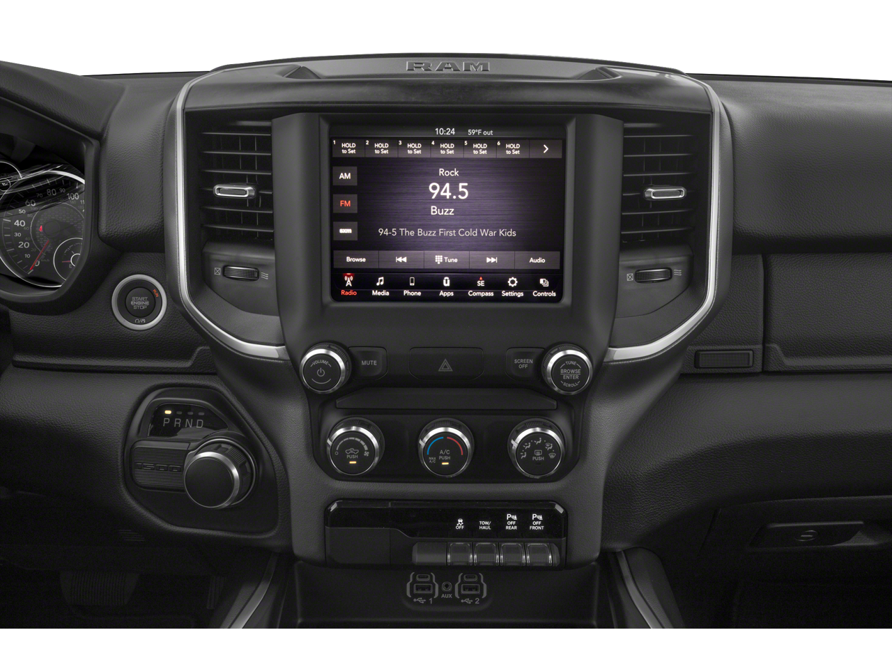 A PREVIOUS DAILY RENTAL, 115V Auxiliary Power Outlet, 2 USB Full Function/Charge Only Media Hub, 8.4 Touchscreen Display, Big Horn Level 2 Equipment Group, Cluster 7.0 TFT Color Display, Dampened Tailgate, Front fog lights, Heated Front Seats, Heated Steering Wheel, ParkSense Front/Rear Park Assist w/Stop, ParkView Rear Back-Up Camera, Power 4-Way Driver Lumbar Adjust, Power 8-Way Driver Seat, Power Adjustable Pedals, Quick Order Package 25Z Big Horn/Lone Star, Radio: Uconnect 4 w/8.4 Display, Rear Power Sliding Window, Remote Start System, Single Disc Remote CD Player, SiriusXM Satellite Radio, Steering Wheel Mounted Audio Controls.
