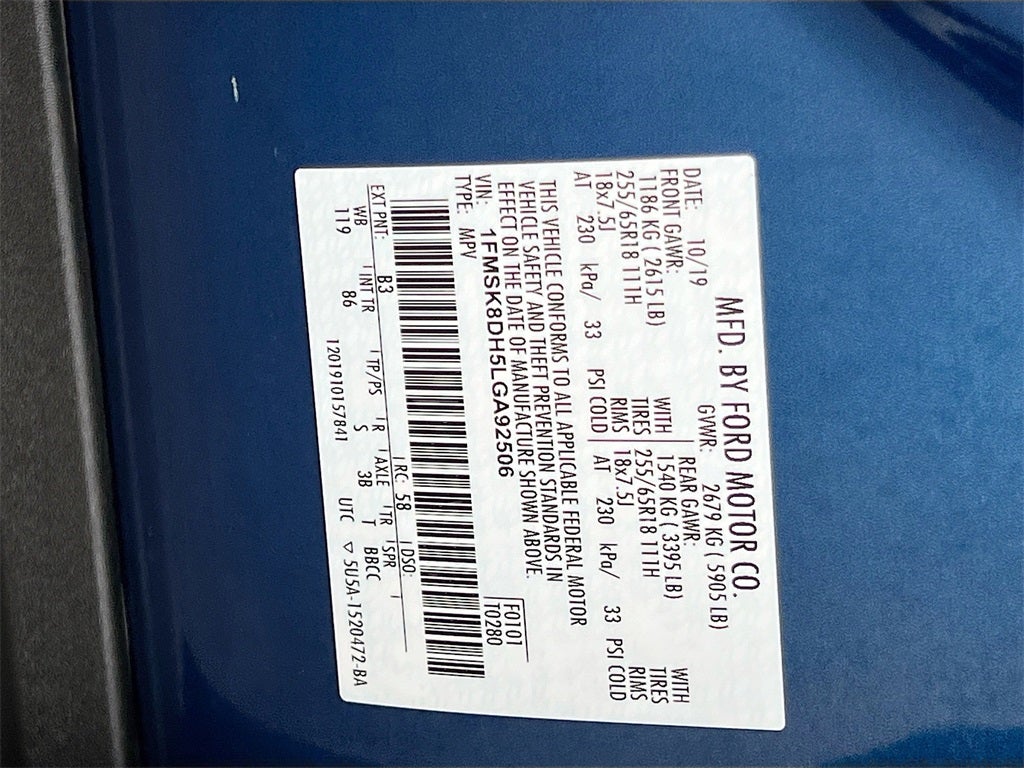 3rd row seats: bench, Equipment Group 200A, Exterior Parking Camera Rear, Power driver seat, Power Liftgate, Rear air conditioning, SYNC 3 Communications & Entertainment System, SYNC 3/Apple CarPlay/Android Auto, Unique Cloth Captain's Chairs, Wheels: 18 5-Spoke Sparkle Silver-Painted Alum.
