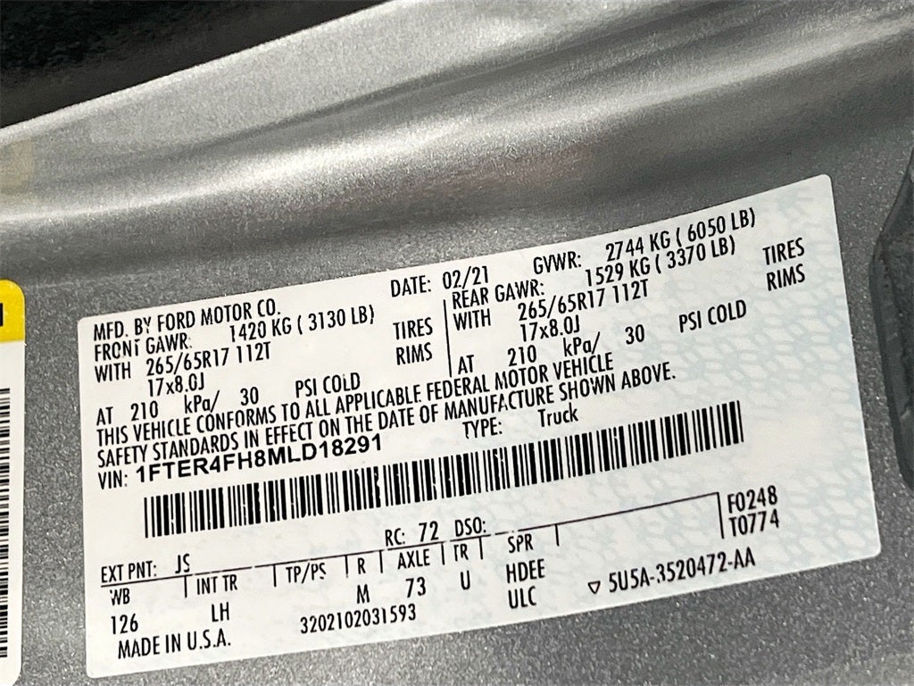 2021 Ford Ranger XLT Iconic Silver Metallic 4WD 20/24 City/Highway MPG