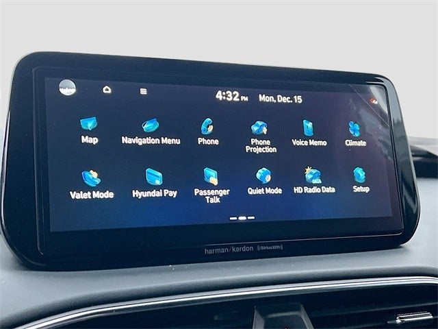 - Radio: AM/FM Harman Kardon Display Audio -inc: 10.25" display screen, 12 Speakers including subwoofer, external amplifier, Clari-Fi music restoration technology, Quantum Logic surround, SiriusXM, HD Radio, Bluelink connected car system, navigation system w/Over-the-Air (OTA) map updates, dynamic voice recognition, Apple CarPlay and Android Auto, Bluetooth® hands-free w/wireless audio streaming, steering wheel audio and phone controls, USB ports and rear seat quiet mode
