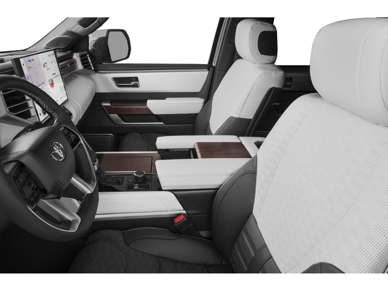 The Capstone’s presence is undeniable. Rolling on massive 22-inch dark chrome alloy wheels and featuring a unique chrome-accented mesh grille, it exudes an aura of authority. Step inside, and you’re greeted by a cabin that rivals high-end luxury sedans. The exclusive two-tone white-and-black interior is draped in ultra-premium semi-aniline leather, accented by authentic dark American Walnut wood-grain trim. A standard panoramic sunroof floods the cabin with natural light, making every journey feel like a first-class escape.