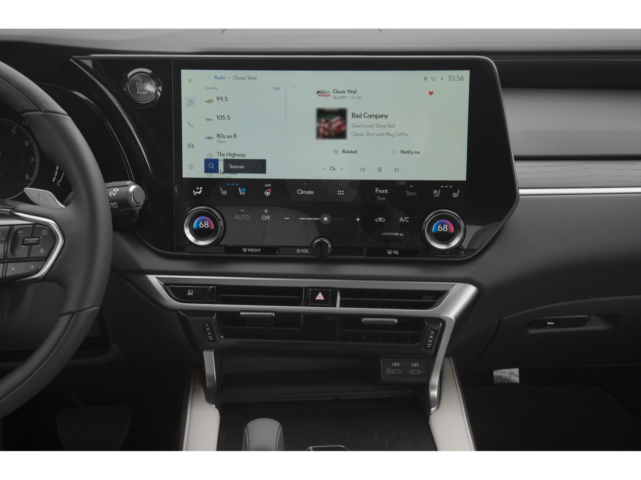 - Radio: Lexus Interface w/14" HD Touchscreen Display -inc: 12 speakers, navigation system, wireless Apple CarPlay integration, wireless Android Auto compatibility, Safety Connect w/up to 10-year trial, Service Connect w/up to 10-year trial, Remote Connect w/3-year trial, Wi-Fi Connect w/up to 30-day/3gb trial and Drive Connect w/cloud navigation, Intelligent Assistant and Destination Assist w/3-year trial