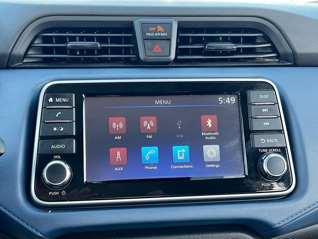 - Radio: AM/FM Audio System -inc: RDS, MP3, aux-in, 7" Advanced Drive-Assist Display, NissanConnect featuring Apple CarPlay and Android Auto, Bluetooth® hands-free phone system, streaming audio via Bluetooth®, interface for iPod and other compatible devices, hands-free text messaging assistant, Siri Eyes Free/Google Assistant voice recognition, 4 speakers and 3 USB ports (2-charge only)