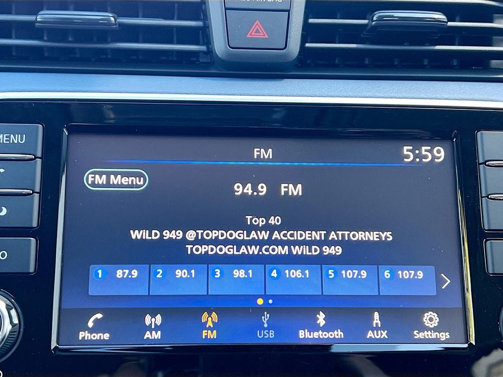 - Radio: AM/FM Audio System -inc: RDS, MP3, aux-in, 7" Advanced Drive-Assist Display, NissanConnect featuring Apple CarPlay and Android Auto, Bluetooth® hands-free phone system, streaming audio via Bluetooth®, interface for iPod and other compatible devices, hands-free text messaging assistant, Siri Eyes Free/Google Assistant voice recognition, 4 speakers and 3 USB ports (2-charge only)